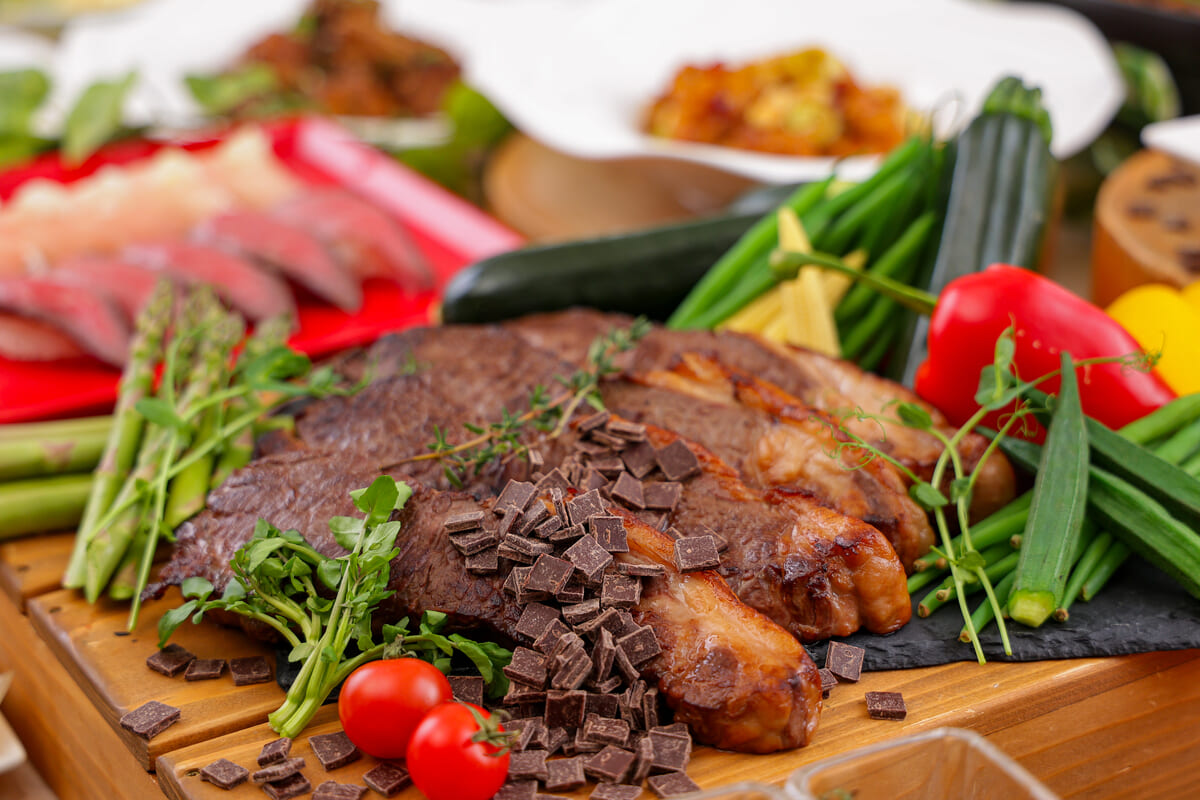 2024年に開催された「肉とチョコレートブッフェ」が、「意外な組み合わせだが、想像以上にマッチしていて驚いた」「ステーキのチョコレートソースがクセになる味。甘すぎず、大人の味わいでした」と大好評だったため、2025年も開催が決定しました☆