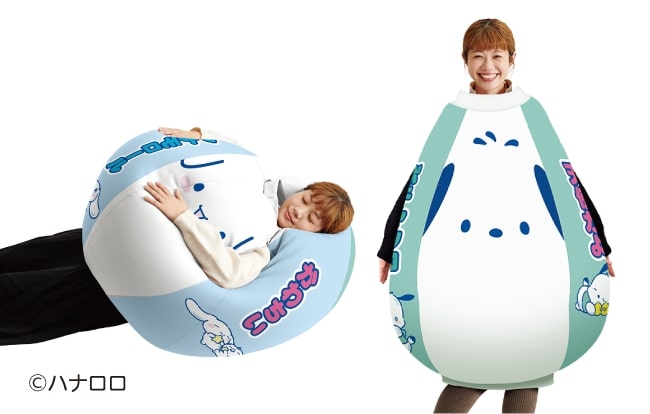 「シナモロール」と「ポチャッコ」を着られる巨大ビーズクッション。