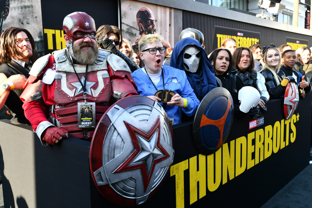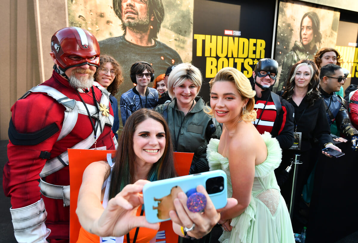 歴代マーベルヒーローや、今後の活躍にも期待がかかる新チーム〈サンダーボルツ*〉をイメージした衣装に身を包んだ熱狂的なファンたちが集い、熱気に包まれる中、『サンダーボルツ*』の豪華キャスト&製作陣がカーペットに登場すると、黄色い歓声があがりました。