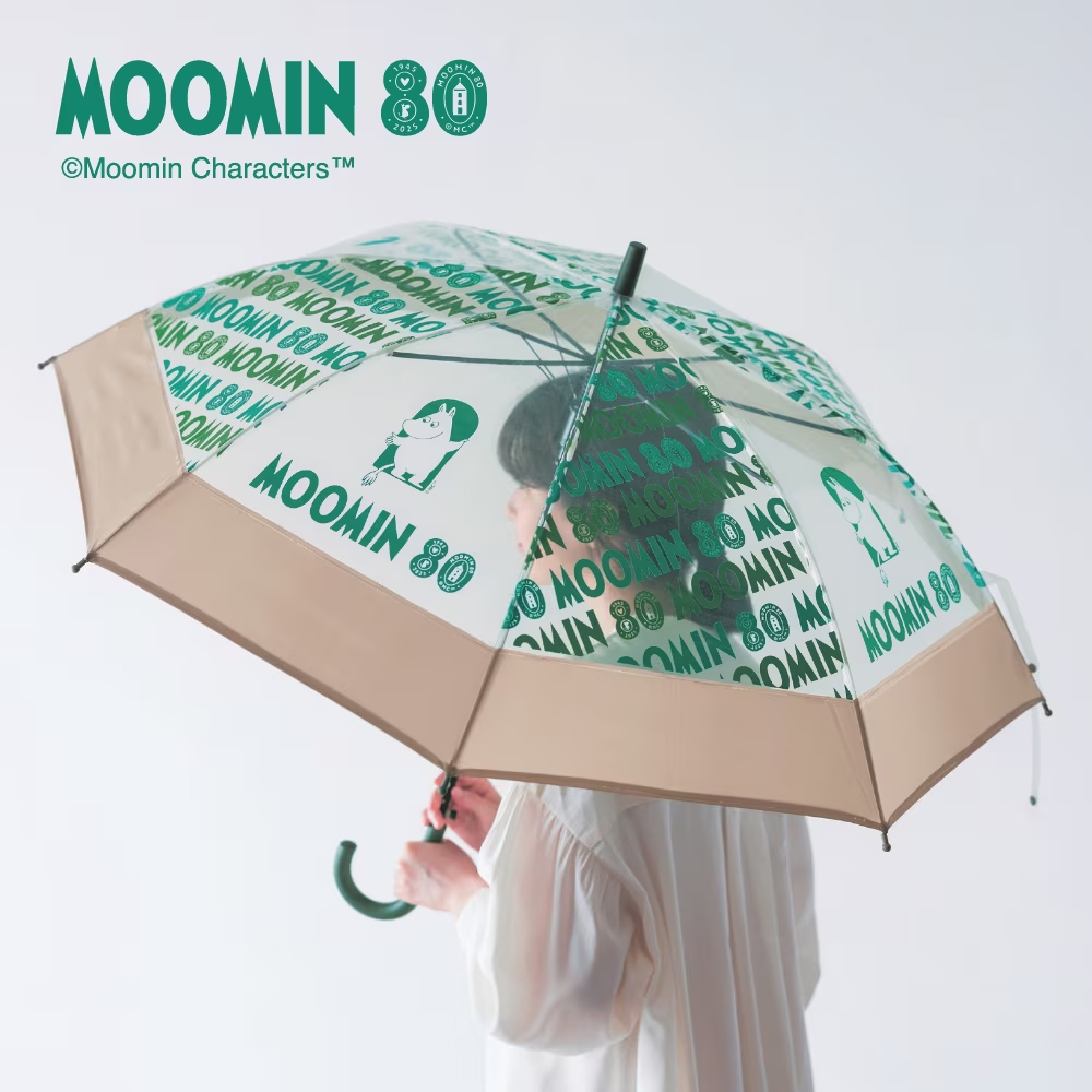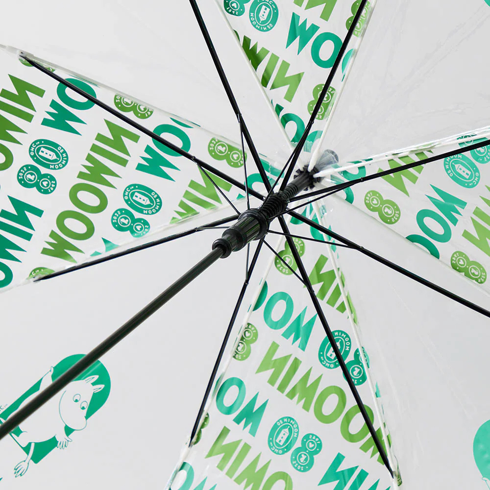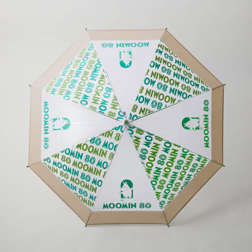 「ムーミン」80周年のロゴをスタイリッシュに配置した、「80周年ロゴ柄」のビニール傘。