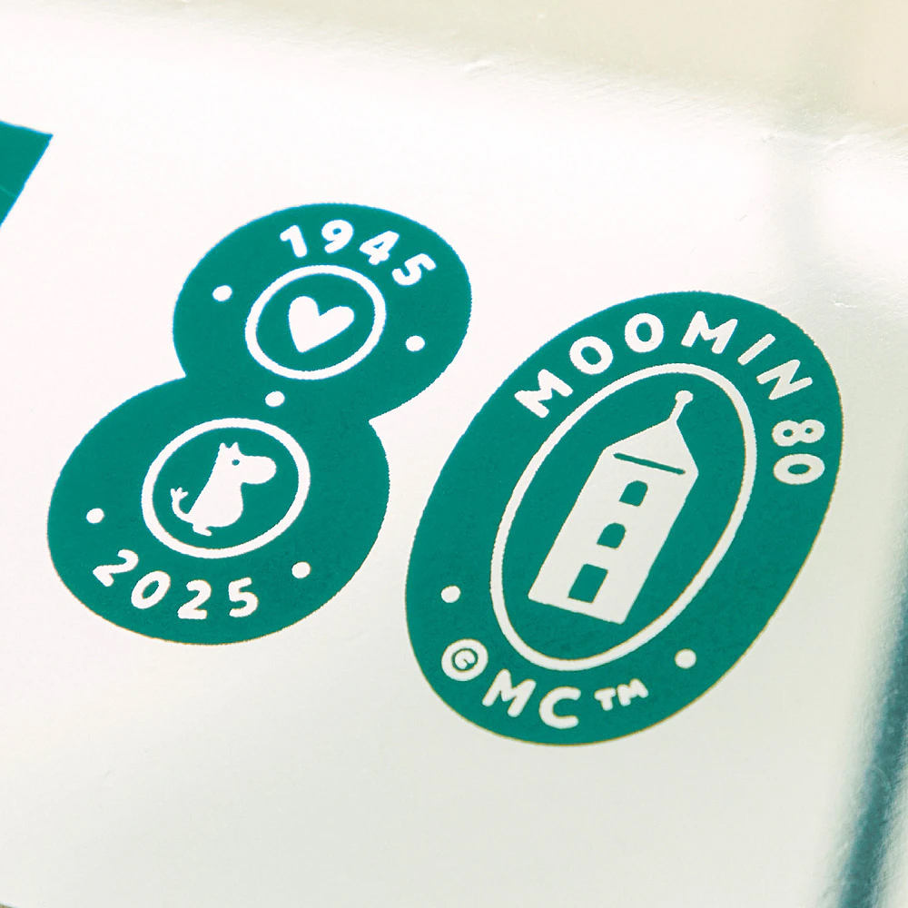 「MOOMIN 80」のロゴタイプがたくさんの、アニバーサリー感あふれるデザインです!