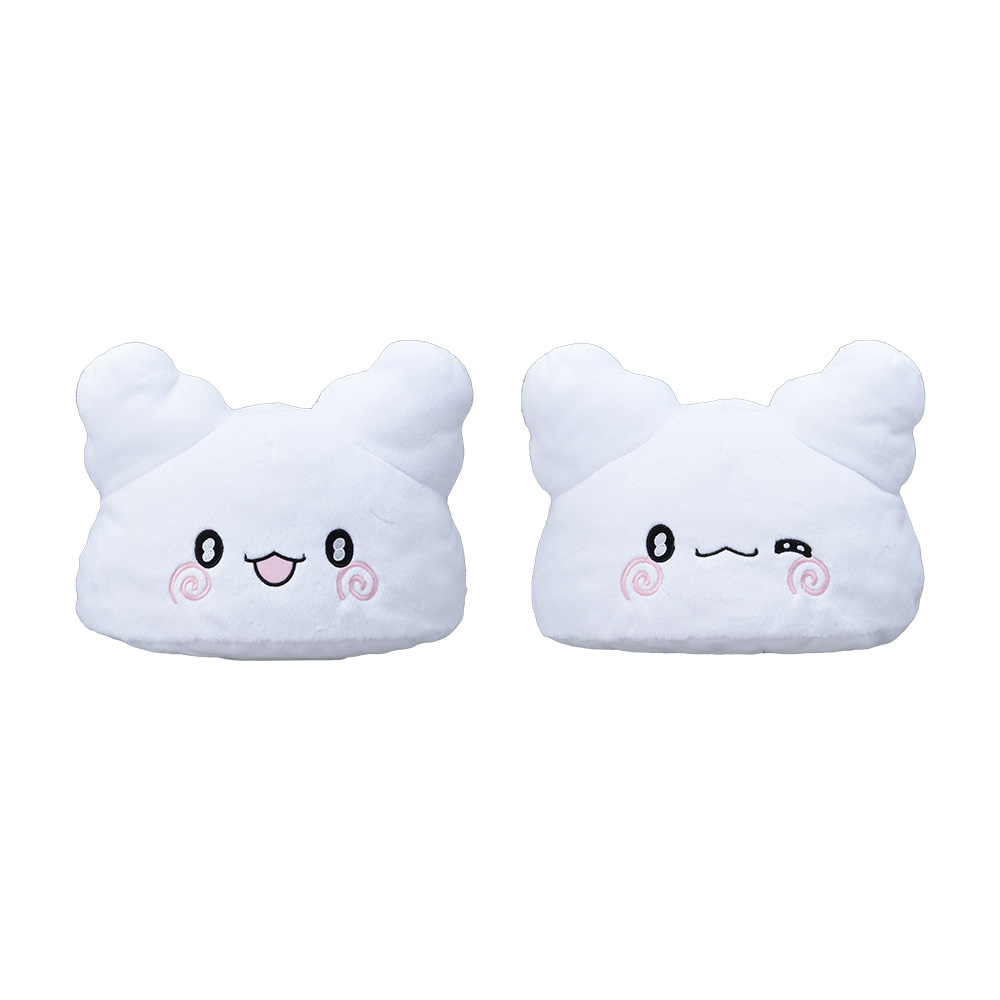 まっ白な丸いシルエットに、愛らしい瞳とうずまき模様のほっぺがポイントです。