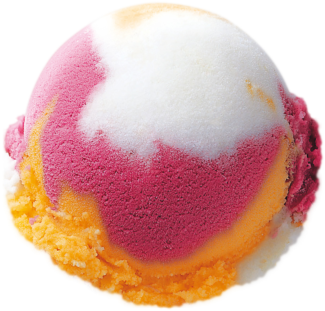 オレンジ、ラズベリー、パイナップルがひとつになった「レインボーシャーベット」