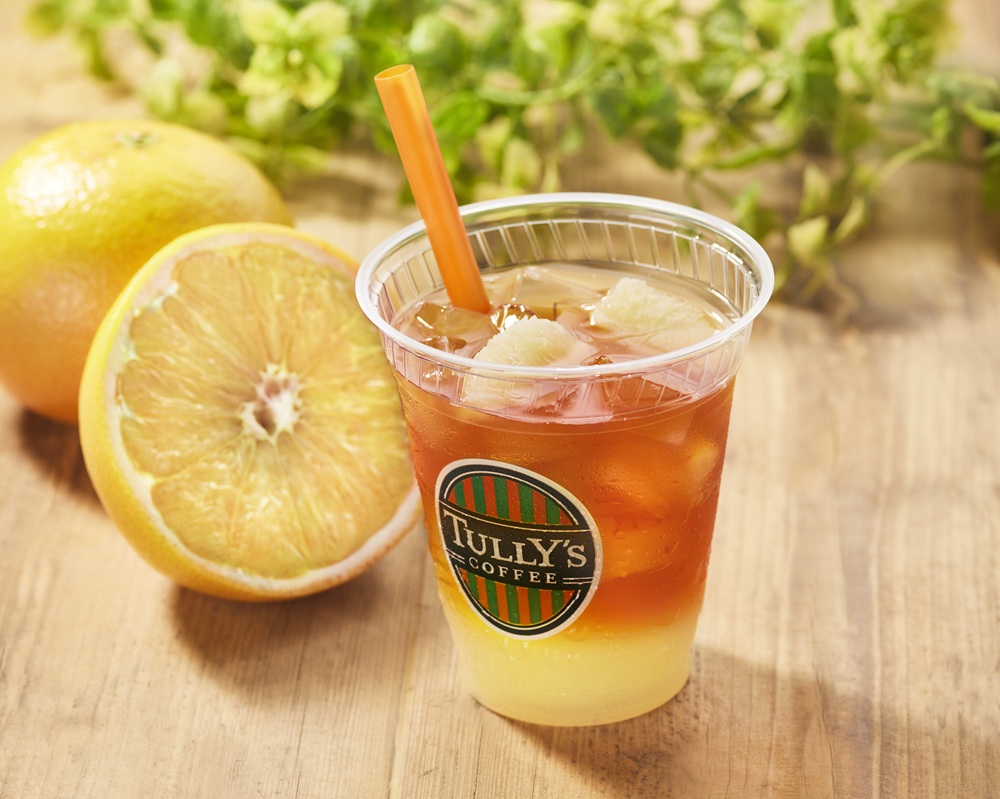 「&TEA グレープフルーツセパレートティー」は、みずみずしいグレープフルーツの果汁と香り高いアイスティーの二層仕立てのドリンクに、ジューシーな果肉をトッピングした、爽やかなフルーツティー。