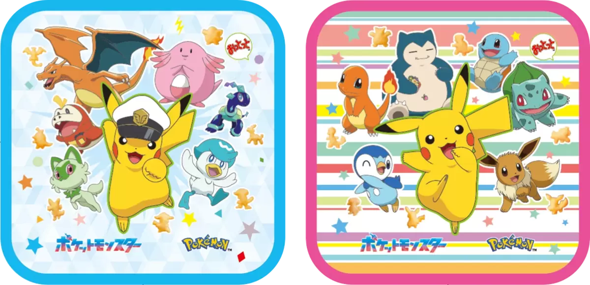 キャプテンピカチュウやリザードン・ラッキーなど、おなじみのポケモンたちをプリントした「おっとっと」