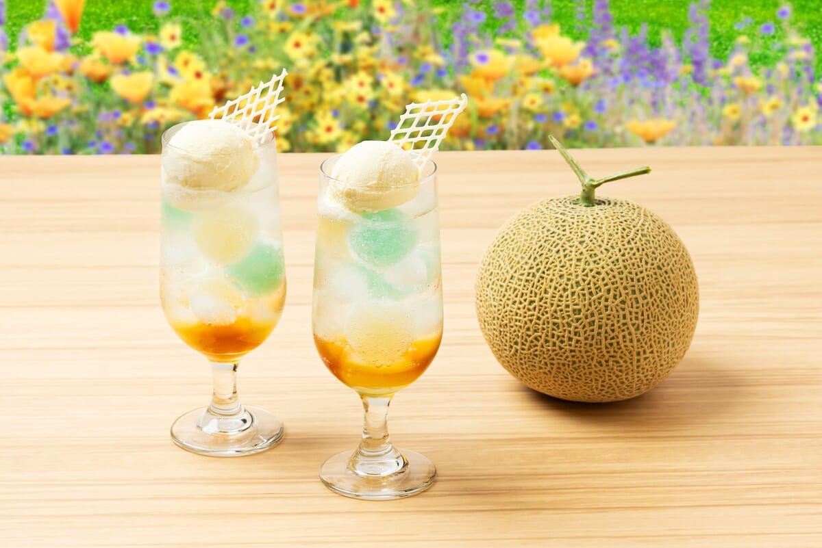 夏らしい爽やかでシュワっと弾けるドリンクに、メロンの果実をイメージした丸い氷と2色のメロン味のフローズンゼリーをプラス。