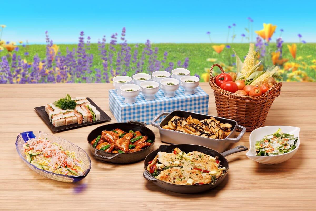 Summer Farmをイメージして、大地の恵みを使った「冷製ポテトミルクスープ 青海苔風味」や「鮭フレークとスキムミルクのシーザーサラダ」もラインナップ。