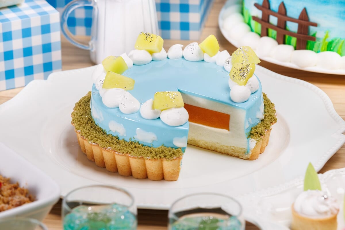 牧場の原っぱをタルトで、青空をムースで表現した「サマーファーム 贅沢メロンムースタルト」