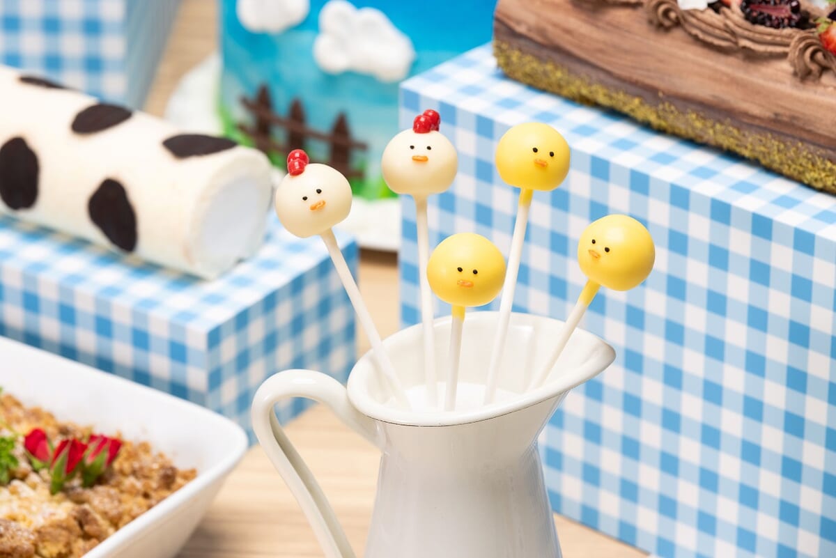 愛らしいひよことにわとりの顔を模した、チョコレートのロリポップがキュート。
