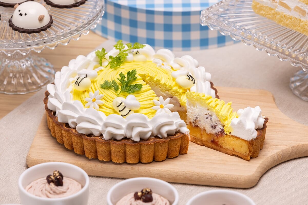 甘い香りに誘われたハチをメレンゲで表現し、甘酸っぱい味わいが楽しめるタルトです!
