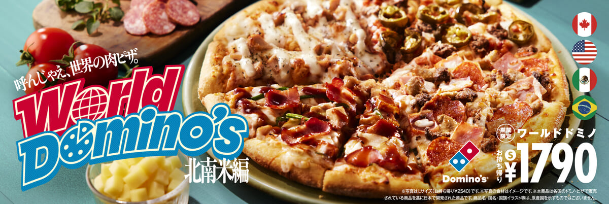 国内No.1シェアを誇る宅配ピザチェーン ドミノ・ピザから、世界各国で人気の肉ピザメニューを日本に集めた夢のようなピザ「ワールドドミノ 北南米編」が期間限定で登場。