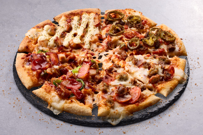 ペパロニ、ハム、イタリアンソーセージ、ビーフなど最も人気のあるミートトッピングを組み合わせ、2層のチーズで挟んだピザです!