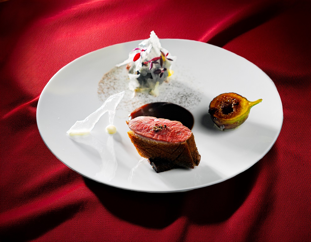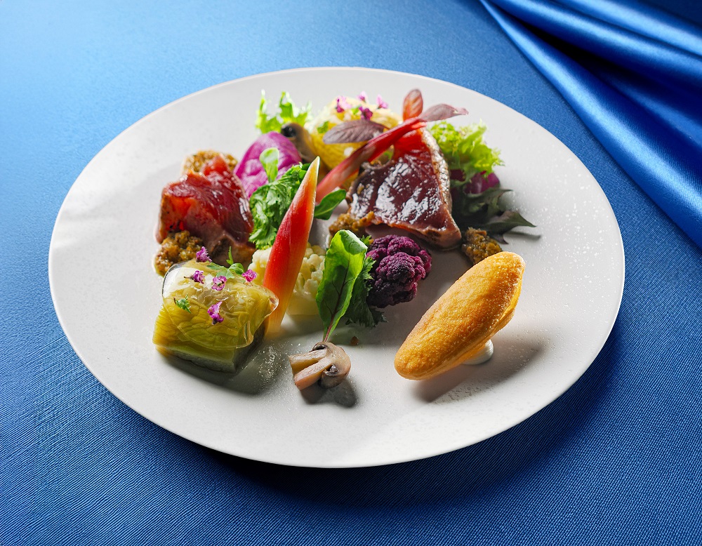 魚料理に続く肉料理は「愛の手がかり」をテーマにした「京鴨のロースト 季節野菜添え」