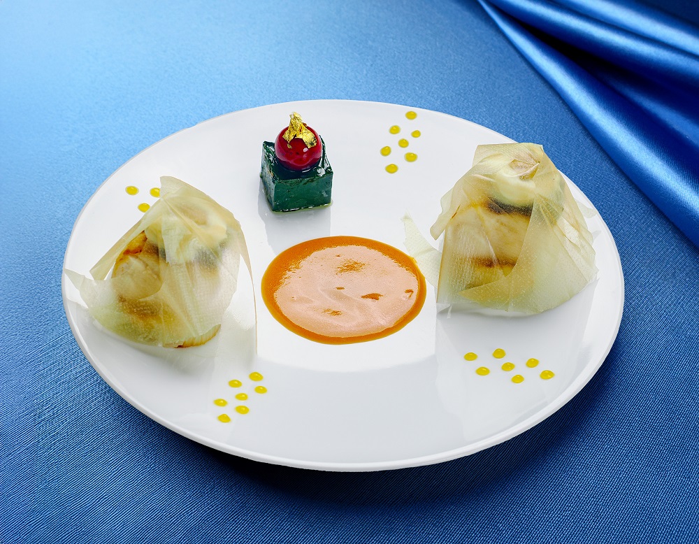 百合根の“襷”(たすき)を添えた、オマールとバニラの出会いを楽しむ一皿です!