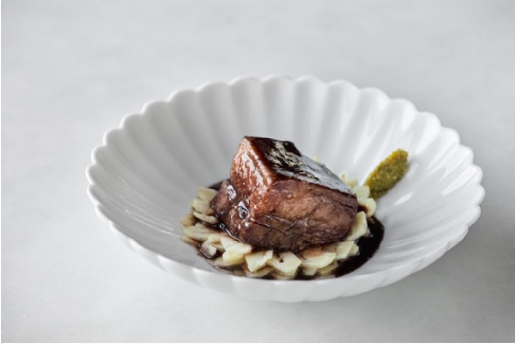 新潟県産もち豚を真空調理することで、きめ細やかな脂身は煮崩れることなく美しく仕上がり、肉の旨味を逃がさない柔らかく仕上がりです。