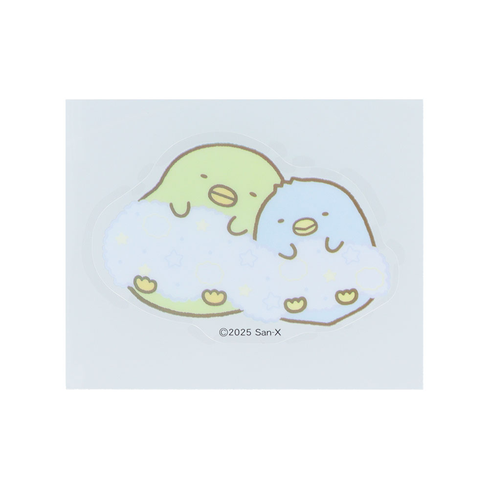 「ぺんぎん?」と「ぺんぎん(本物)」が仲良く寝ている、癒やし度満点なステッカー。