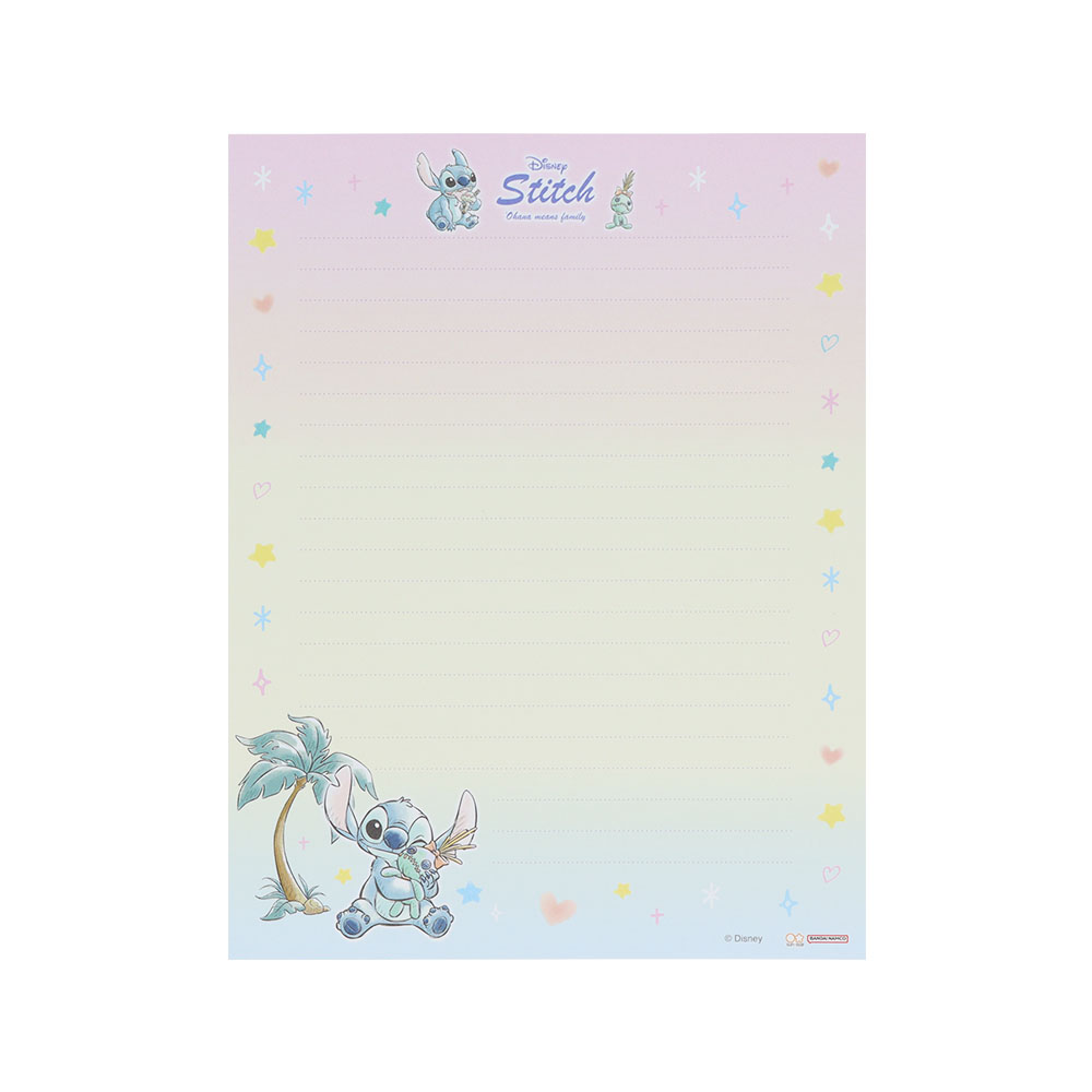 便箋にはヤシの木の近くでくつろぐ「スティッチ」と