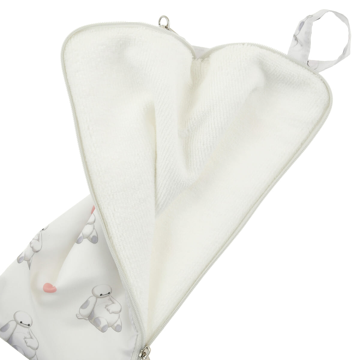 リラックスポーズの「ベイマックス」とハートマークのほっこりデザインを使用した、折りたたみ傘ケース。