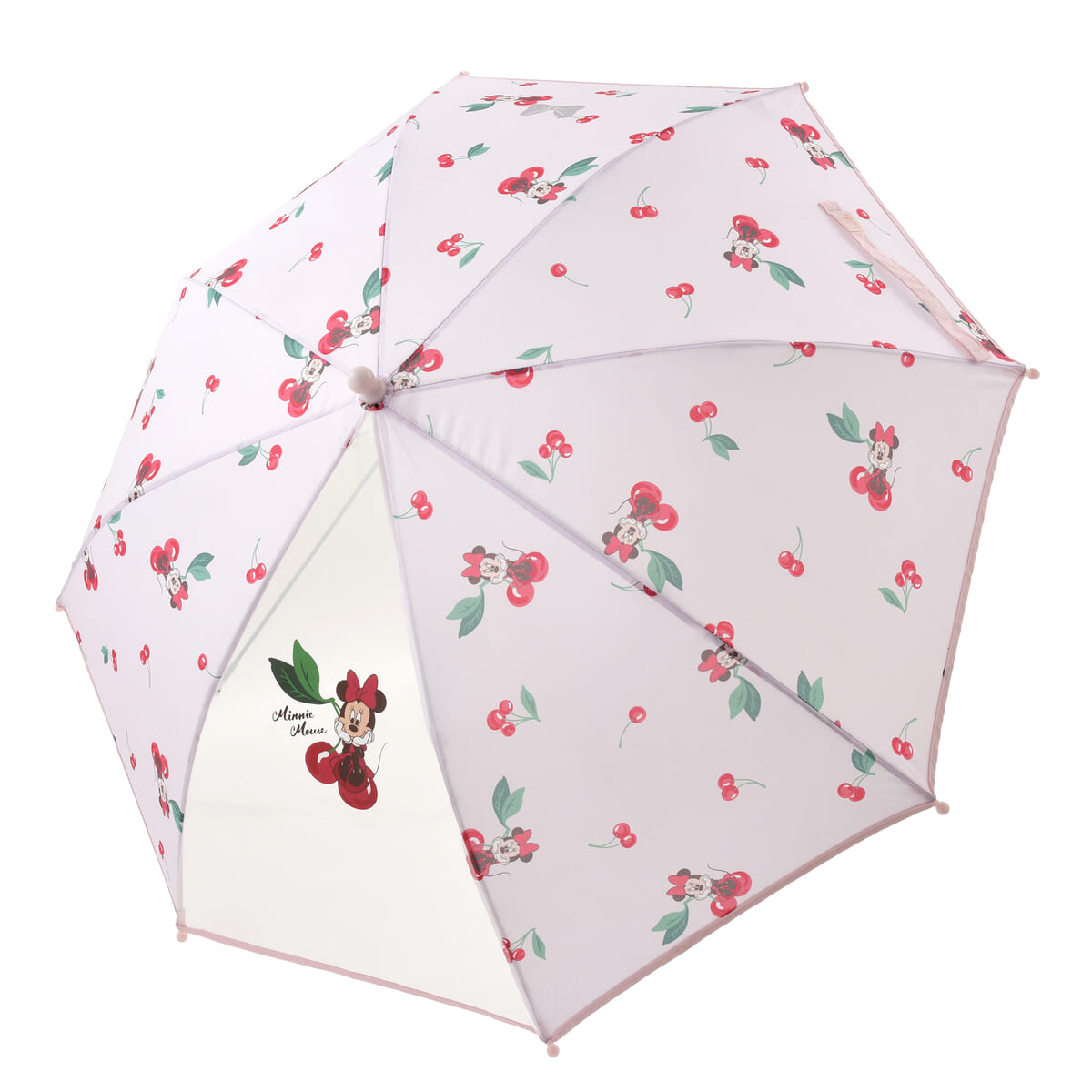 キュートな「ミニーマウス」とチェリーの総柄を使用した、キッズ用長傘。