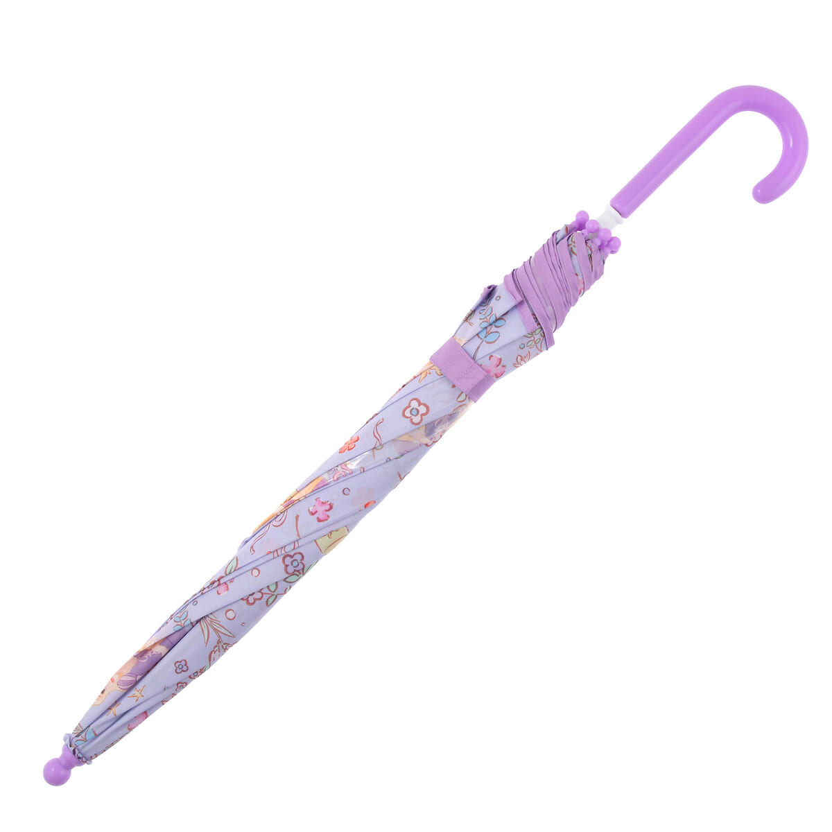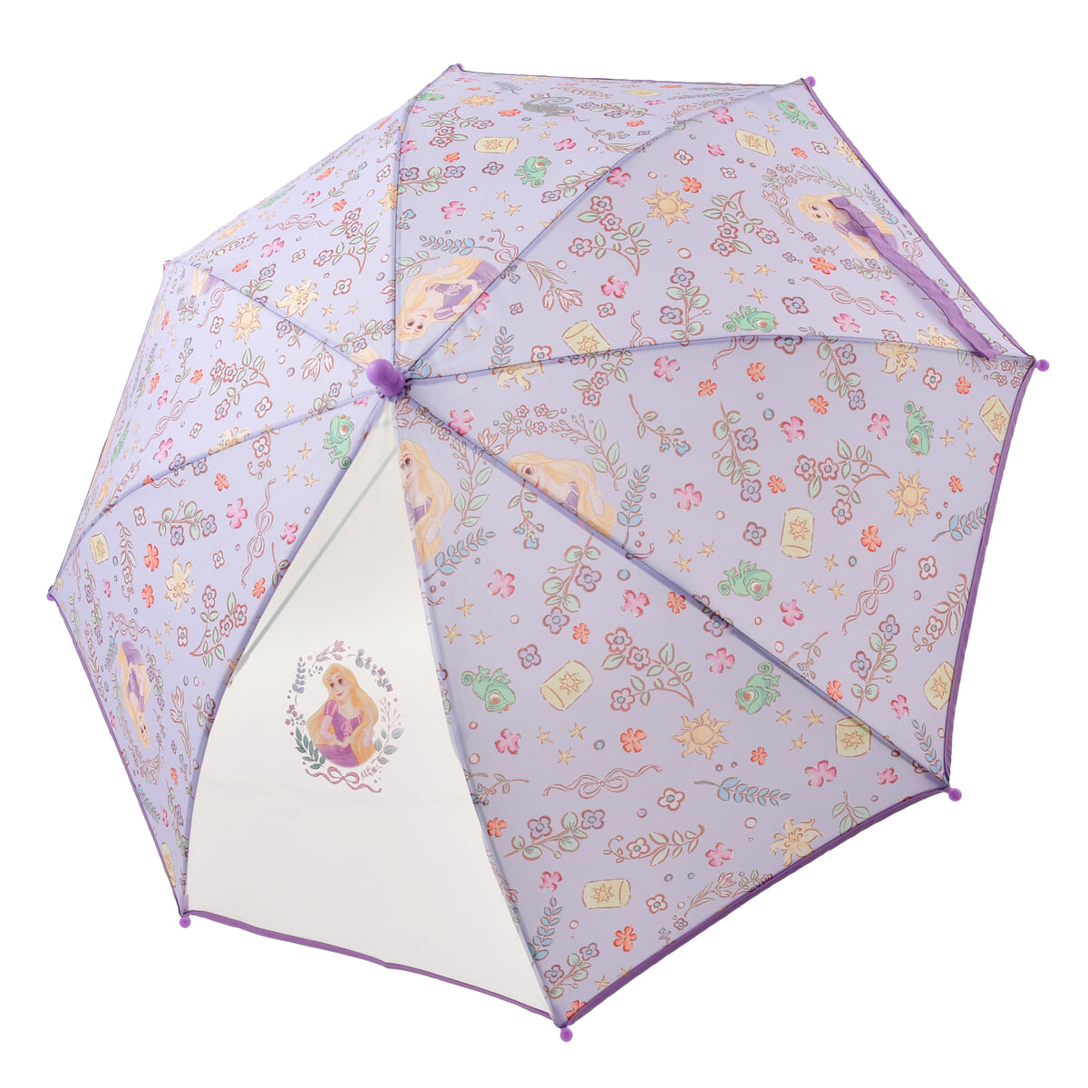 「ラプンツェル」や「パスカル」とともにランタンやリボン、色とりどりのお花などを描いたかわいい総柄プリント傘。