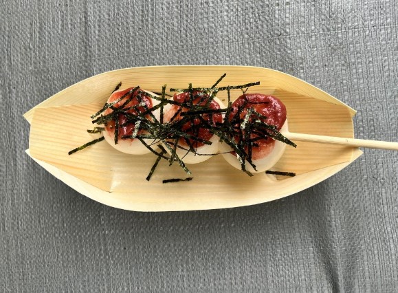 海苔がたっぷりかかった、暑い季節もさっぱり味わえる梅団子です。