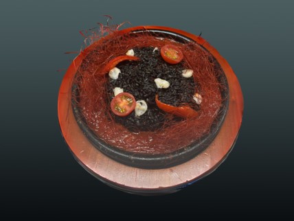 赤と黒の見た目のインパクトが大きな「イカ墨とトマトソースのパエリア ~“暁”襲来~」など、3品が登場。