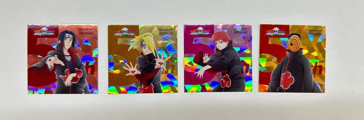 フィナーレイベントでは、「うちはイタチ」「デイダラ」「サソリ」「トビ」の4種類のステッカーが追加されます。