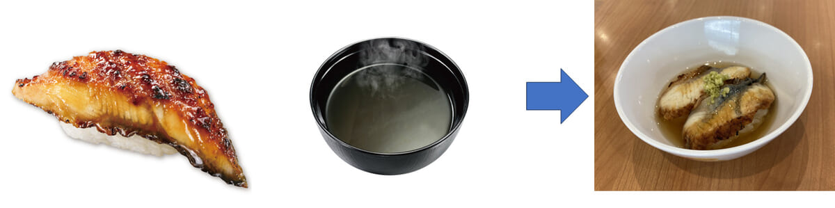 フェアメニューの“国産炙りうなぎ(一貫)”をお子様用のお椀に入れます。