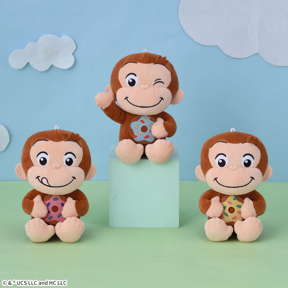 ドーナツを抱っこした、満足そうな表情の「ジョージ」3種がラインナップされます。