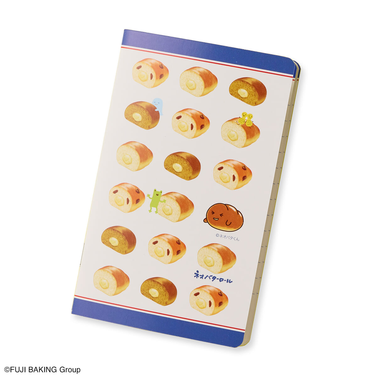 フジパンの人気ベーカリー「ネオバターロール」や「ネオ黒糖ロール」「ネオレーズンバターロール」などが表紙に描かれたミニノート。