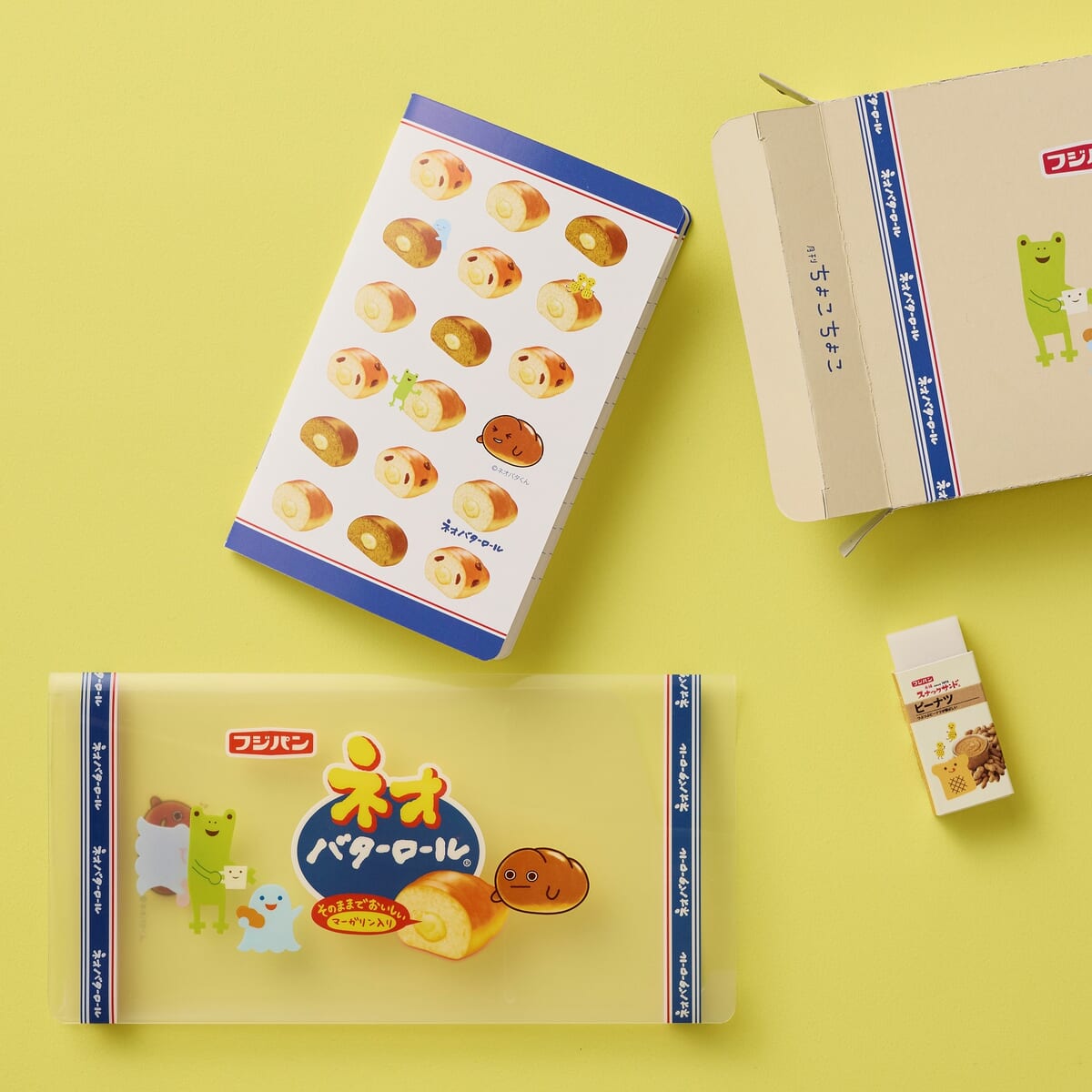 フジパンのロングセラー「ネオバターロール」の妖精「ネオバタくん」と、マンスリークラブの公式キャラクター「ちょこちょこ」が共演した、オリジナルデザインの文具セットです。
