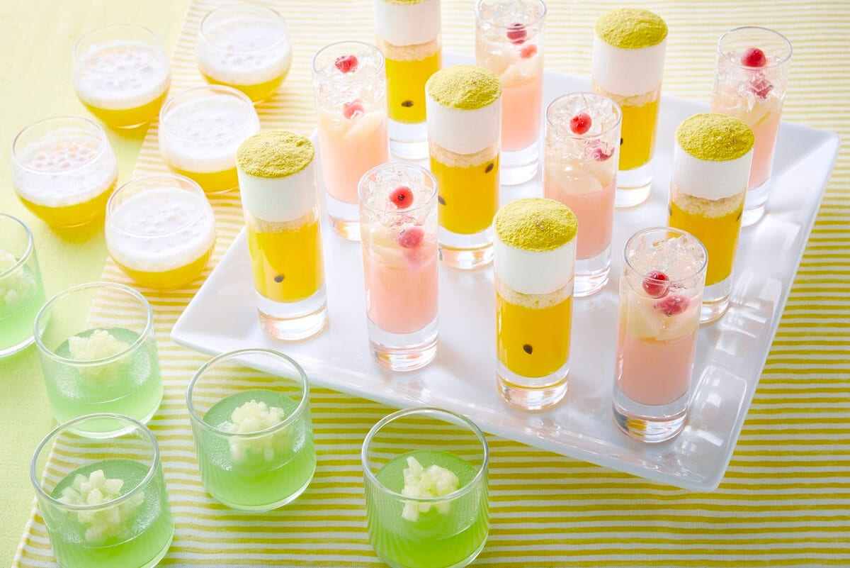 青りんごゼリーにヨーグルトソース、カラータピオカをトッピングした「ぺんぎん?とたぴおかのゼリー」