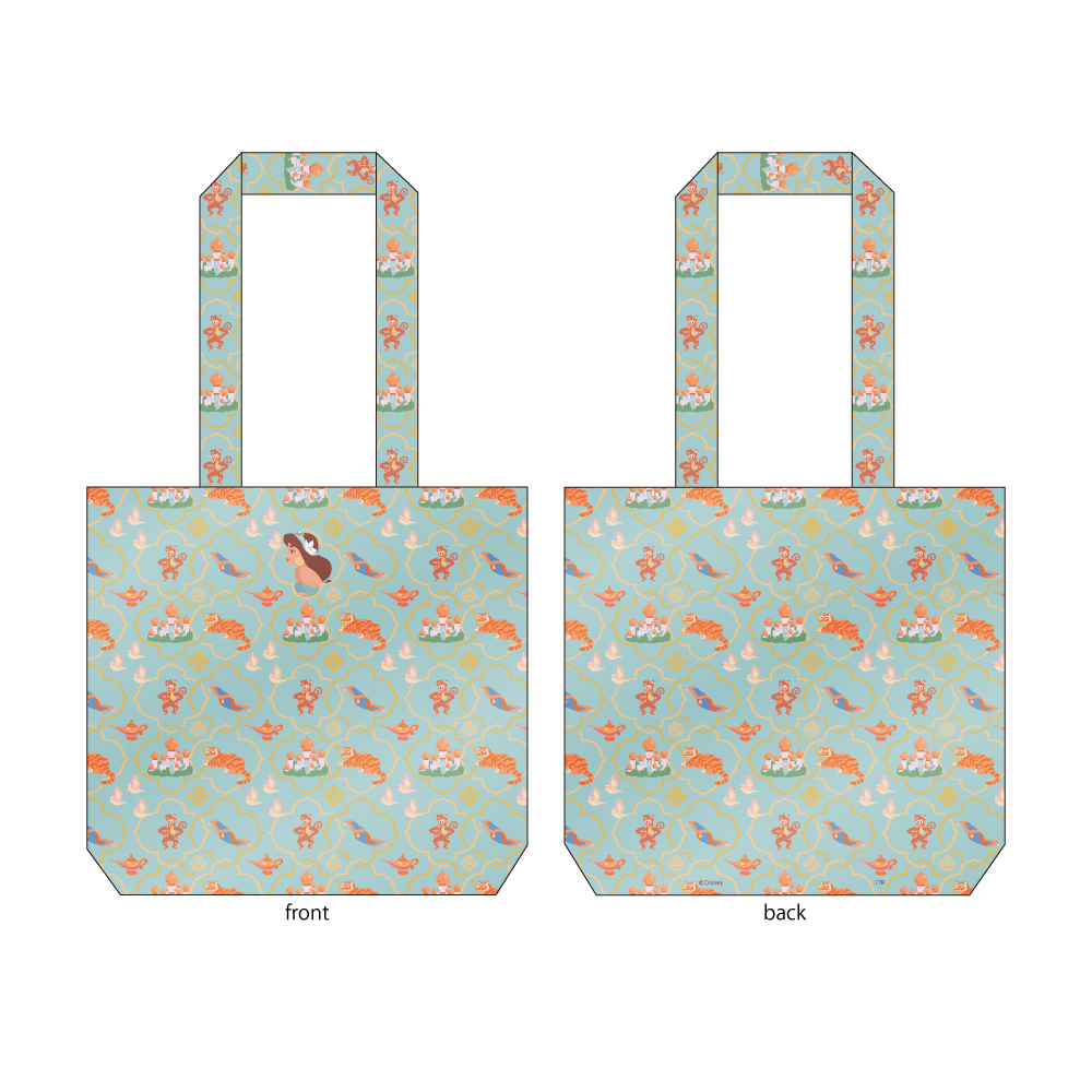 満月をバックに「アラジン」と「ジャスミン」が見つめ合う姿がプリントされています。