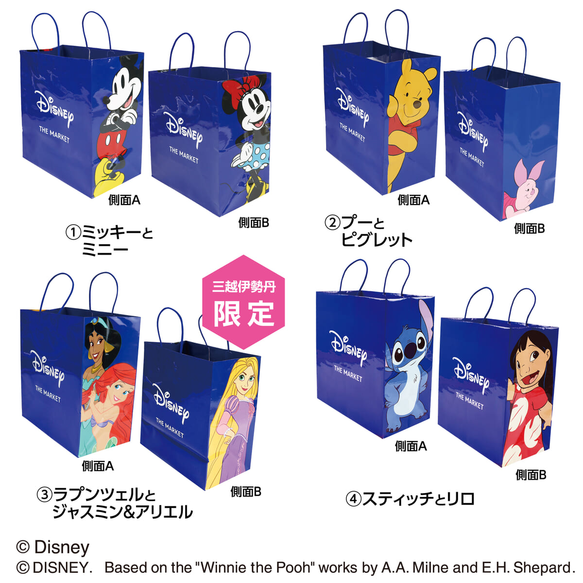 期間中、『Disney THE MARKET 2025 in 福岡三越』会場にて、『Disney THE MARKET』限定デザイン ショッピングバッグ全4種を販売。