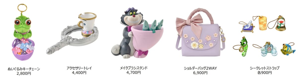 さらに「ラプンツェル」の髪飾りを思わせるお花をデザインしたショルダーバッグ、コーディネートを彩るバッグチャームなど、おでかけの気分が上がるグッズなども揃います☆