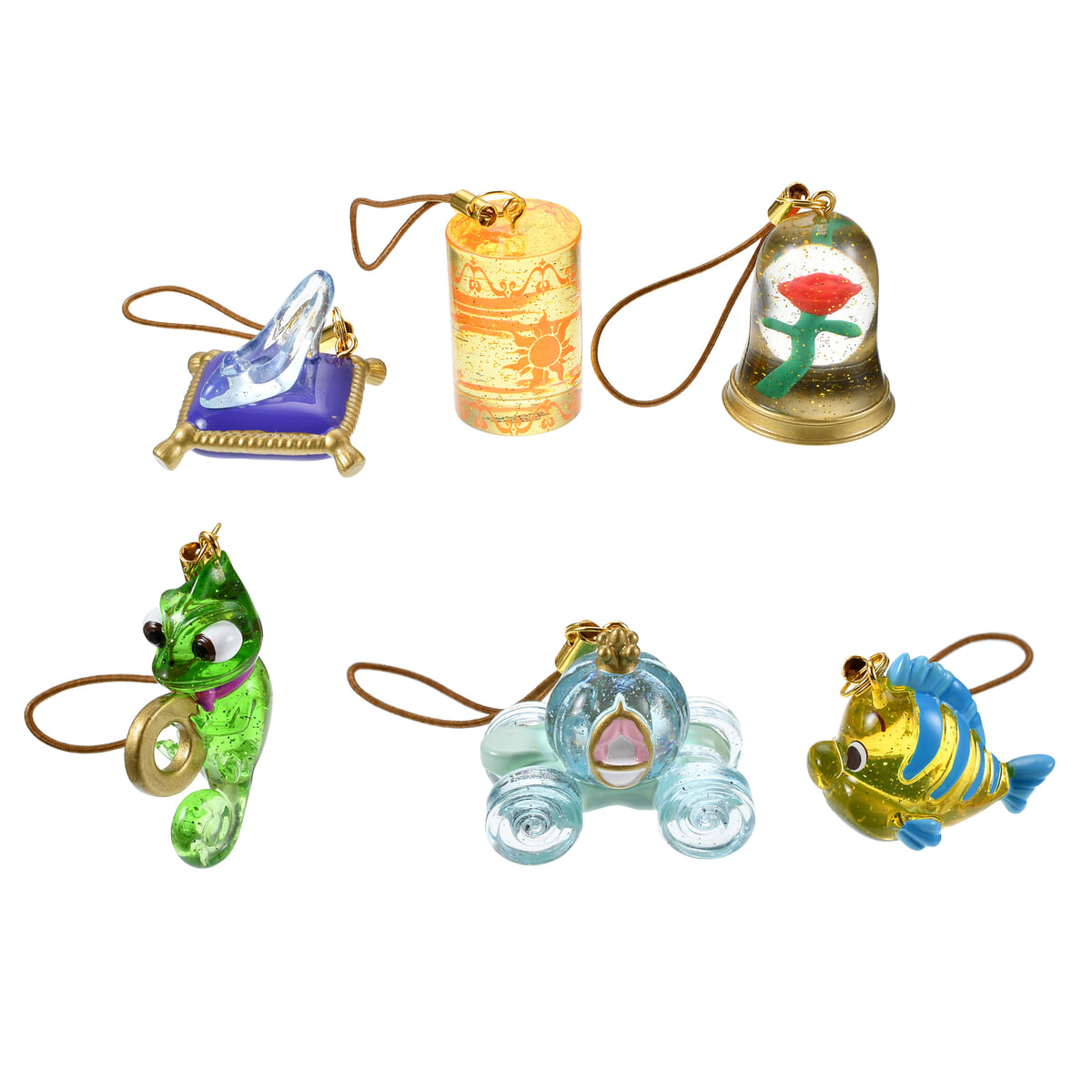 チャームデザインは全6種類で、『塔の上のラプンツェル』の「パスカル」とランタン、『リトル・マーメイド』の「フランダー」、『シンデレラ』のガラスの靴とカボチャの馬車、『美女と野獣』の魔法のバラがモチーフになっています。