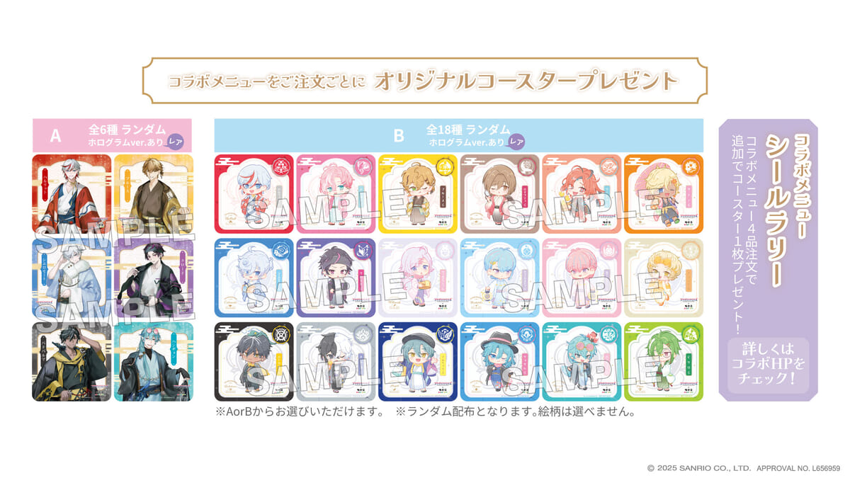 コラボメニューを注文された方に、オリジナルコースターをランダムでプレゼント。