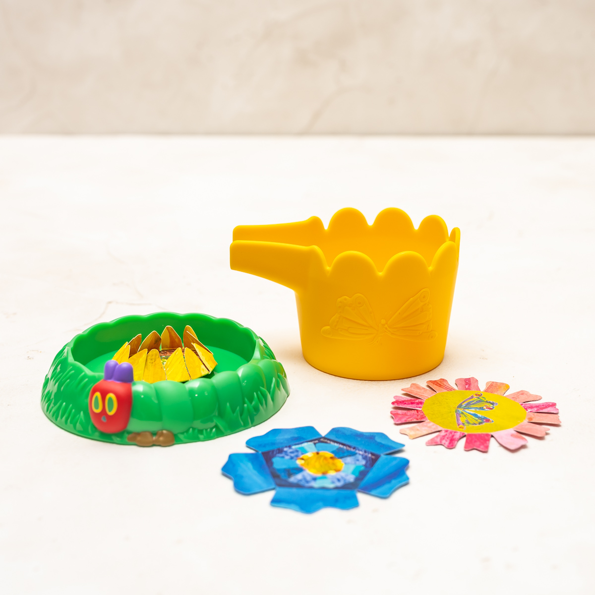 乾かして繰り返し遊べる紙のお花がセットになった「はらぺこあおむし お花のジョウロ」
