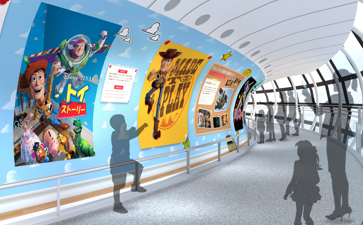 地上450メートルの天望回廊を中心に、『トイ・ストーリー』の世界観を再現した展示装飾が展開されます。