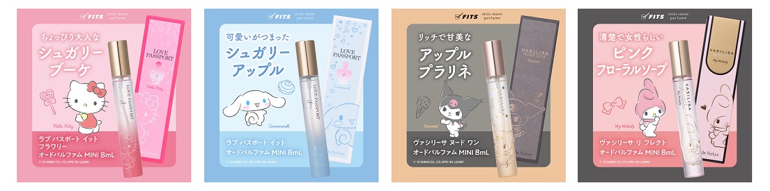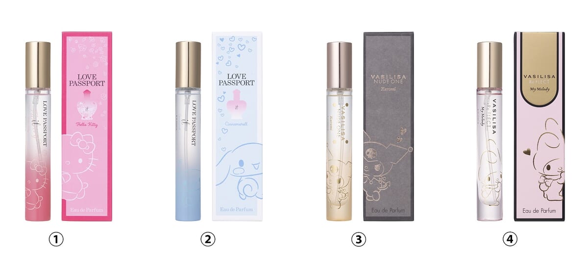 「ハローキティ」「シナモロール」「クロミ」「マイメロディ」とコラボした、限定デザインのミニ香水・練り香水(パフュームスティック)を数量限定で販売されます!