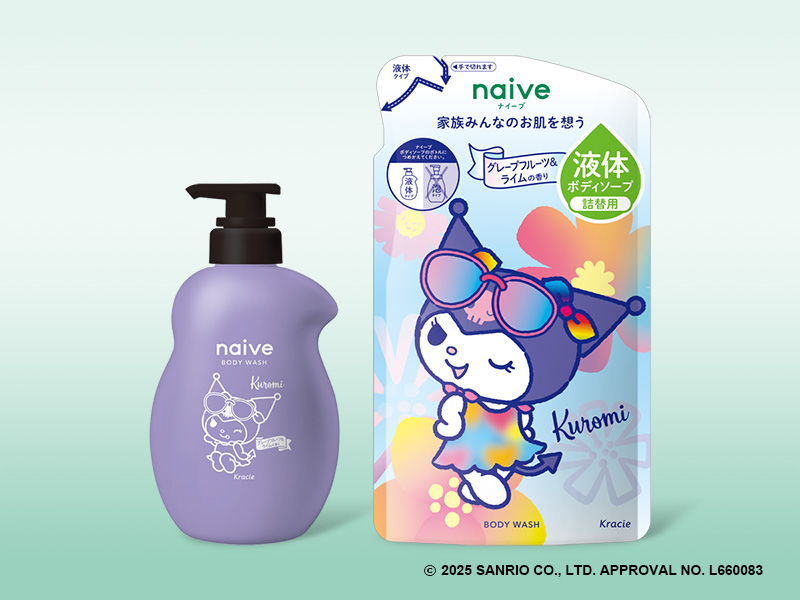 クラシエの洗う成分100%植物生まれの「ナイーブ」ボディソープから、サンリオの人気キャラクター「クロミ」と「マイメロディ」デザインの第2弾が登場します。