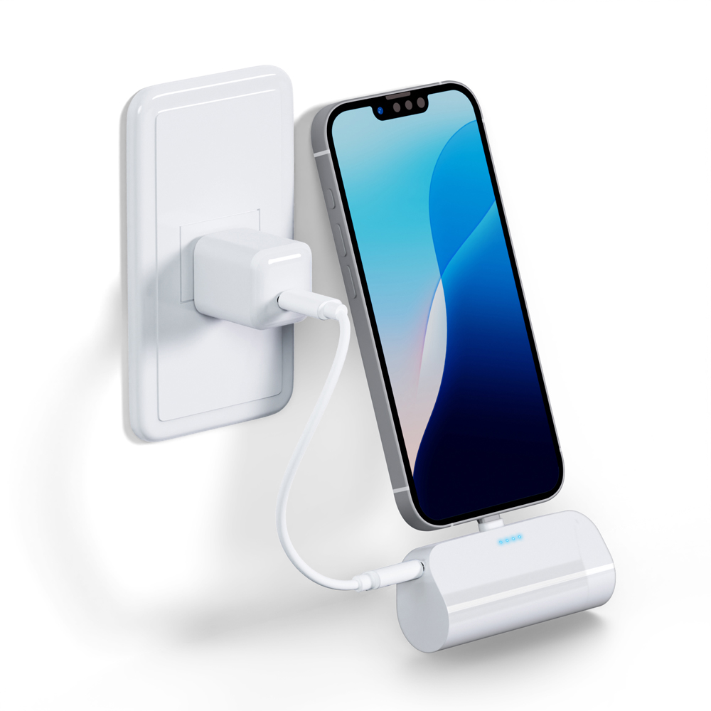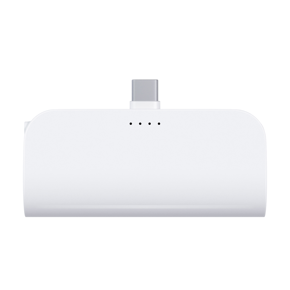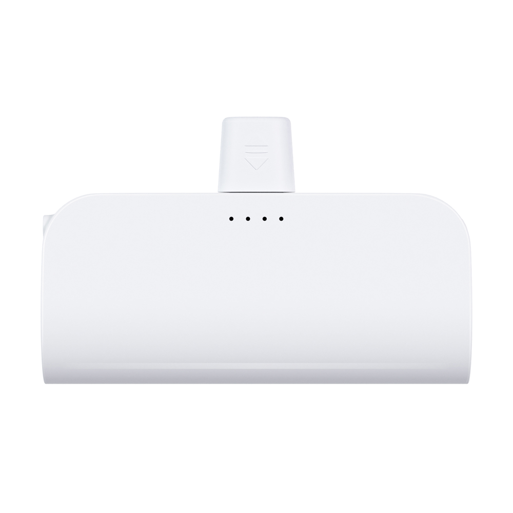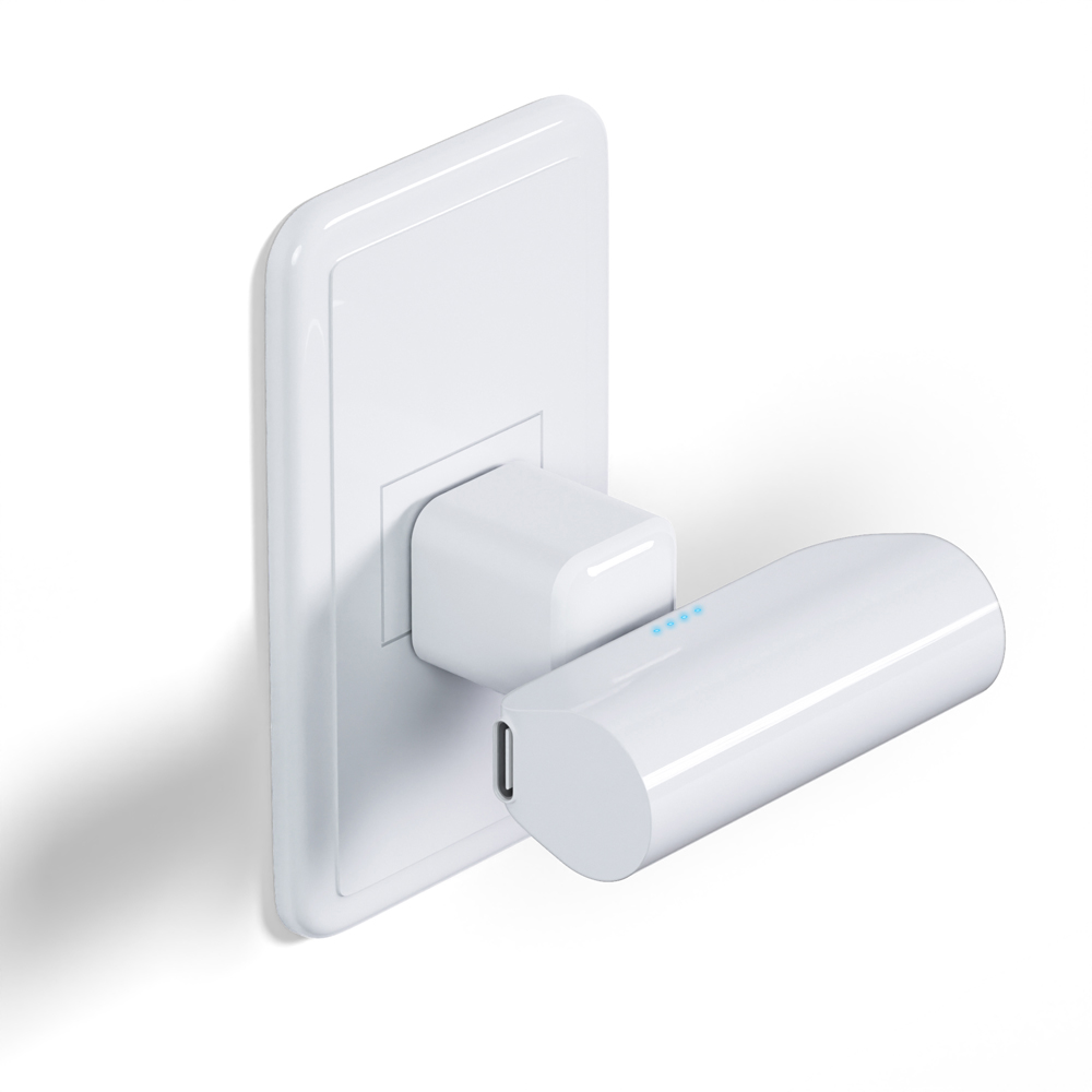すっきりとスマートなホワイトのモバイルバッテリー。