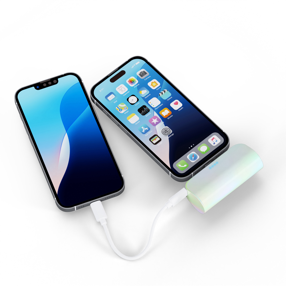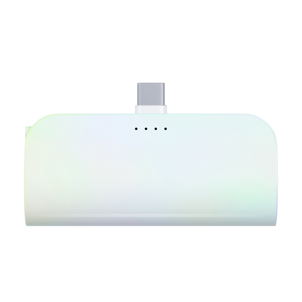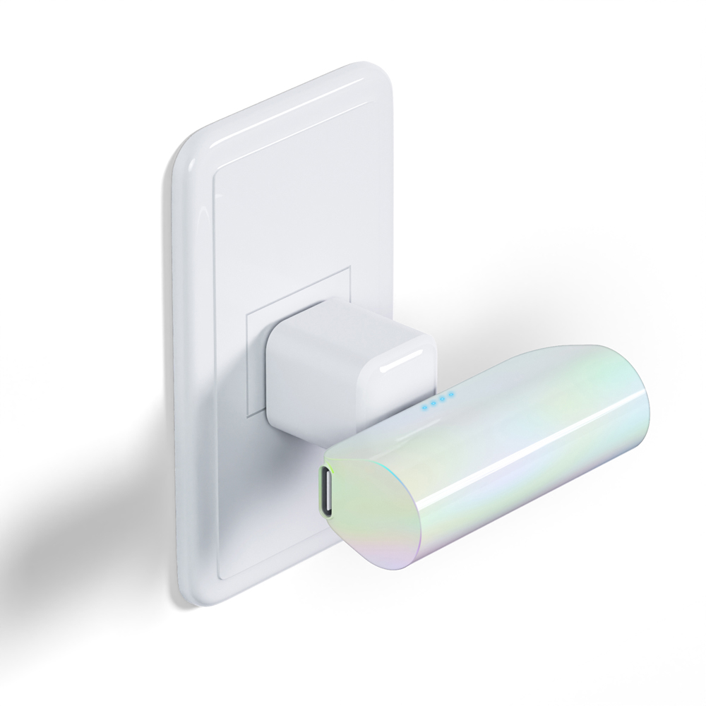 無駄のないフォルムのモバイルバッテリーが、オーロラ色に煌めきます。