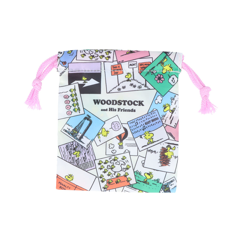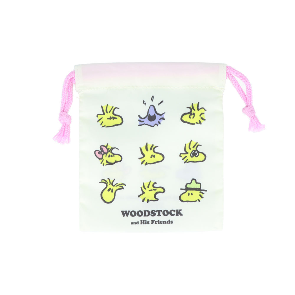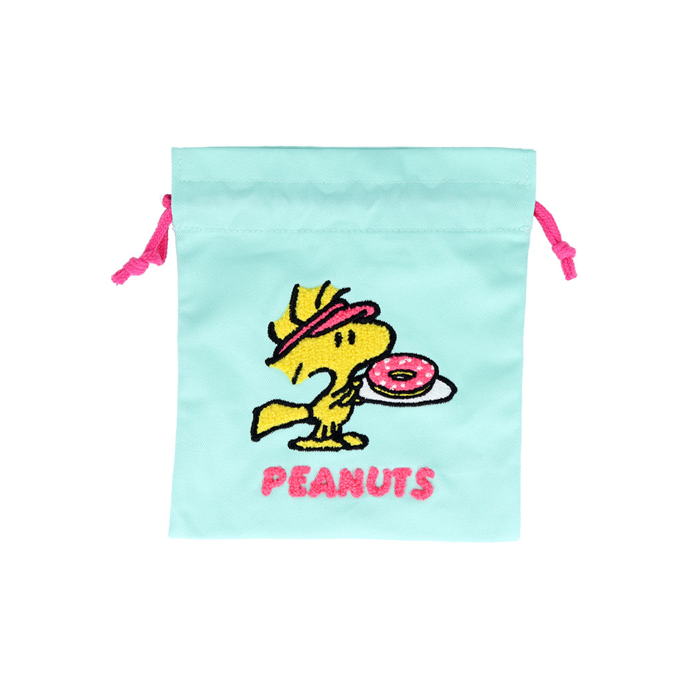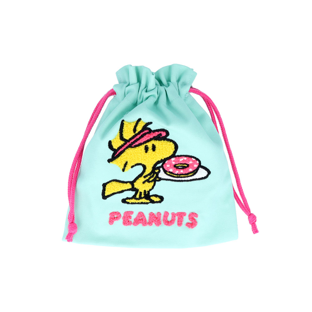 「ウッドストック」たちのお顔を散りばめた巾着は、
