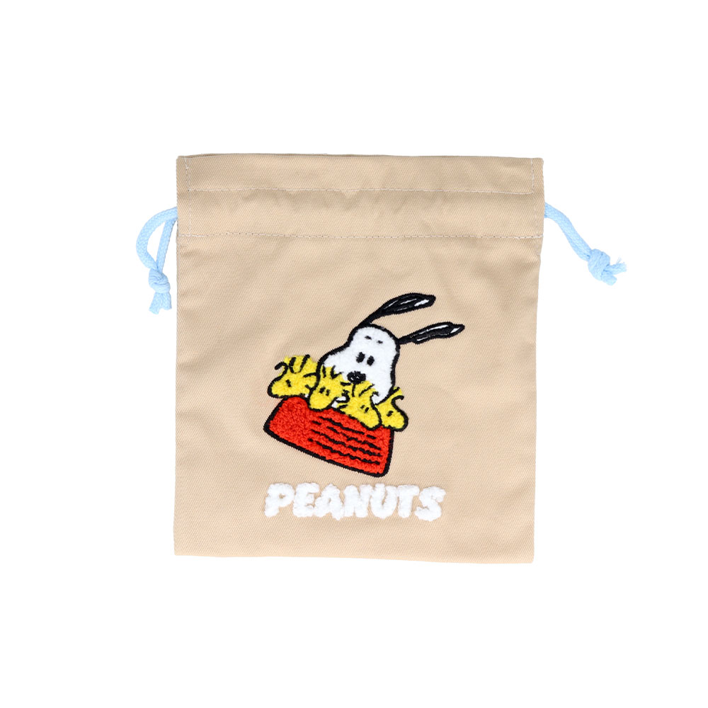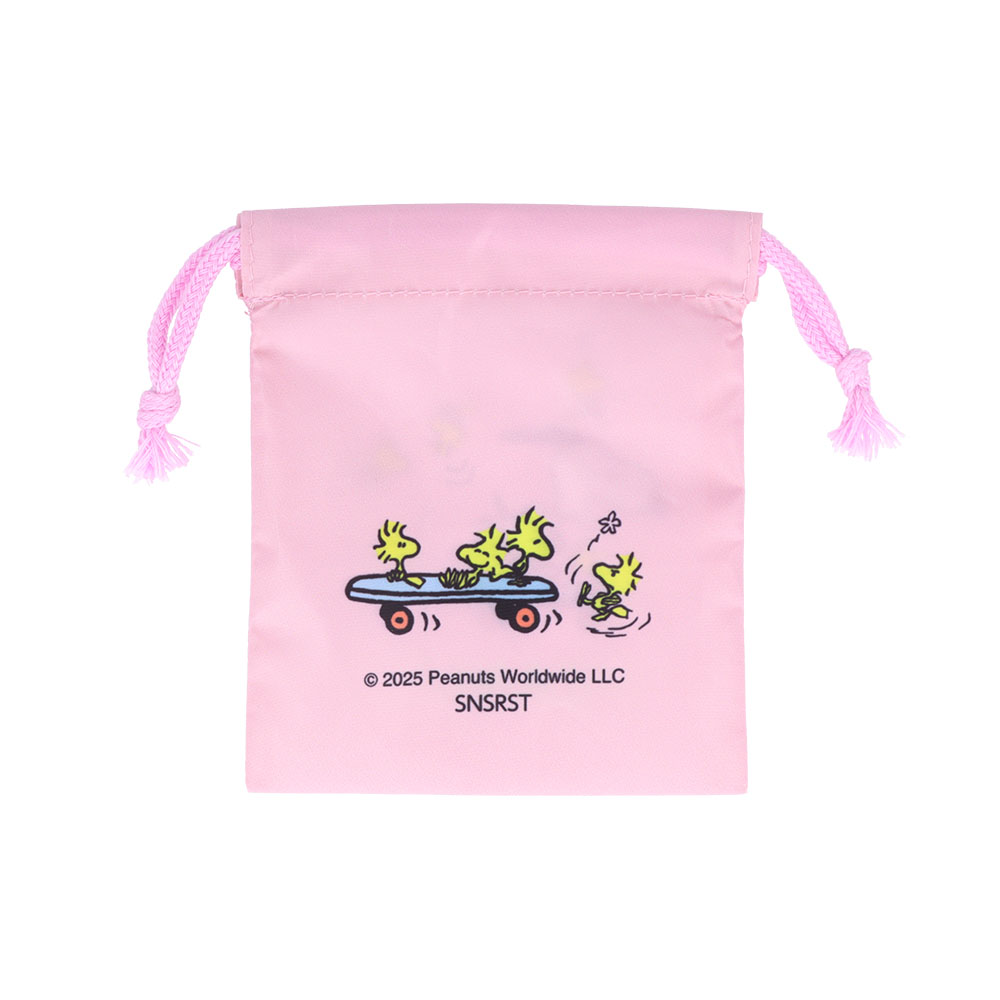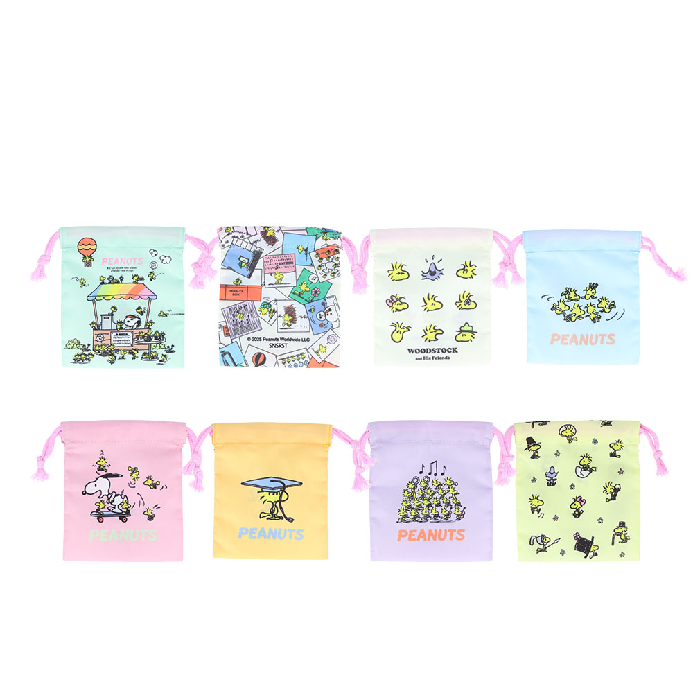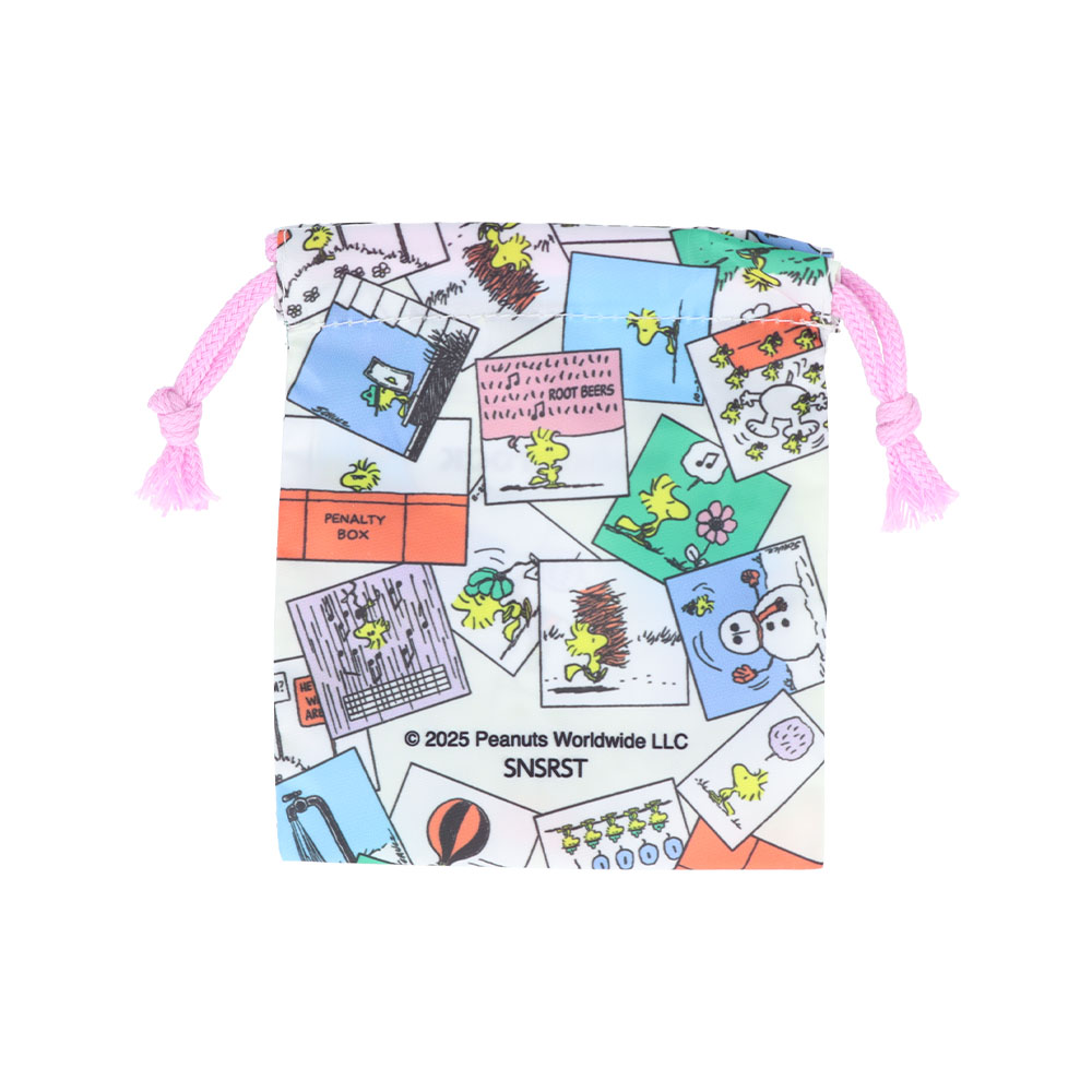 「ウッドストック」たちのお顔を散りばめた巾着は、