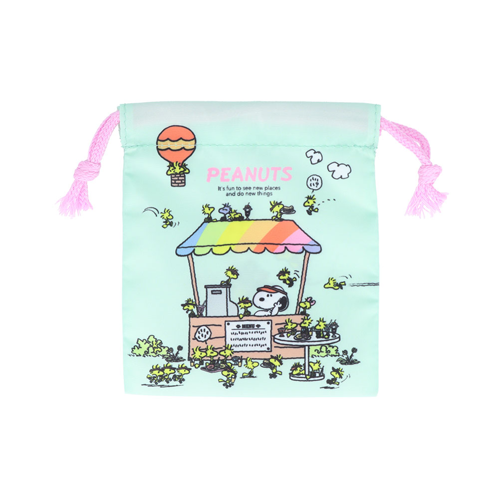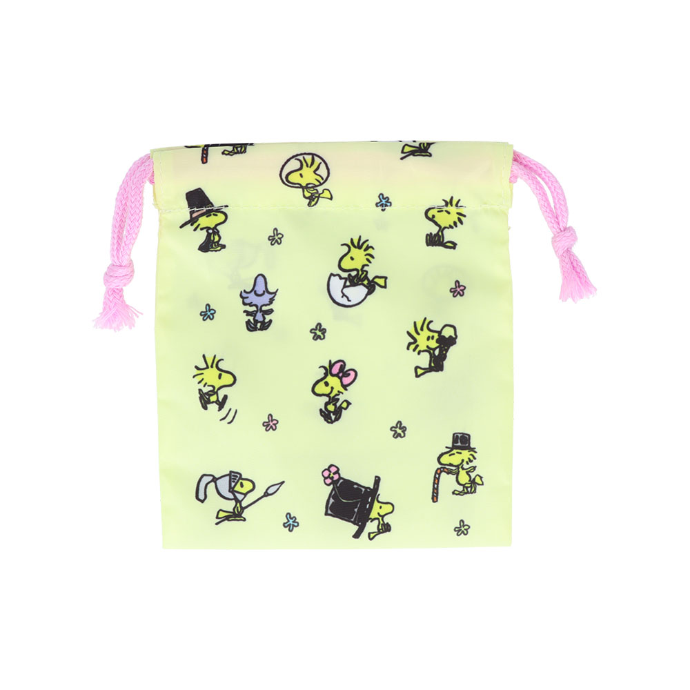 小花と共に「ウッドストック」を描いた総柄巾着もラインナップ。