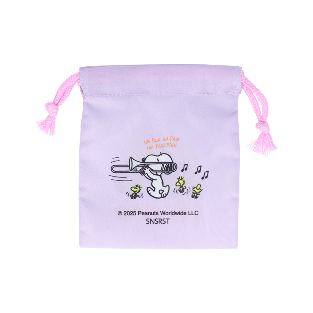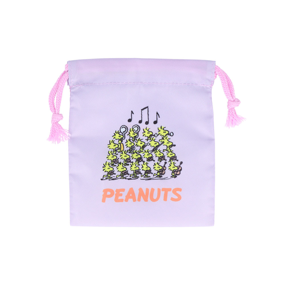 オーケストラ風のデザインが使用された「ウッドストック」柄の巾着は、