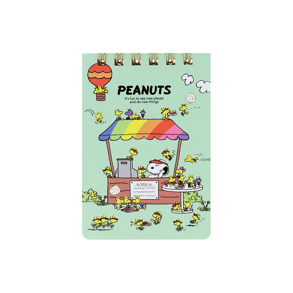 「ウッドストック」をプリントした、図形なども書き込みやすい方眼タイプのメモです。