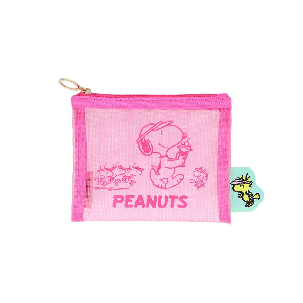 パフェを運ぶ「スヌーピー」とローラースケートに乗る「ウッドストック」たちをレイアウトしたピンク。