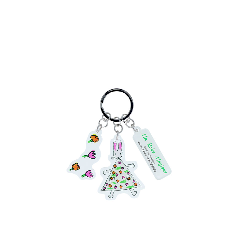 3連チャームが目を引くアクリルキーホルダー。